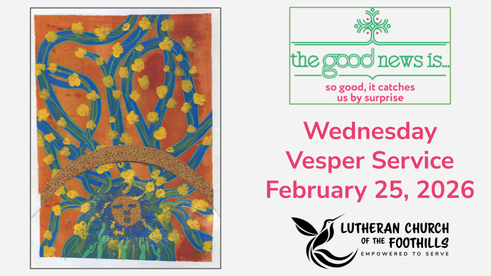 Join us for a respite from the heaviness of the world to hear the good news during our evening vesper service.