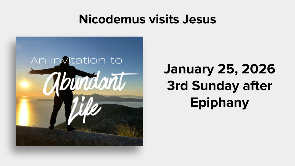 Liturgical music and selected liturgies from sundaysandseasons.com. Copyright © 2026 Augsburg Fortress. All rights reserved. Reprinted/ podcast/ streamed by permission under Augsburg Fortress Liturgies Annual License #SAS103718. • New Revised Standard Version (Updated Edition) Bible, copyright © 2022, Division of Christian Education of the National Council of the Churches of Christ in the United States of America. Used by permission. All rights reserved. • Hymns reprinted/ podcast/ streamed with permission under OneLicense.net License #A-722966. • Hymns reprinted/ podcast/ streamed with permission under CCLI License #AH-21591520 and 21591513. All rights reserved • “Narrative Lectionary 2025-2026” https://www.workingpreacher.org/home-narrative-lectionary.. Accessed 12 August 2025. • Creed © The Iona Community from The Iona Abby Worship Book, published by Wild Goose Publications, Iona Community, Glasgow, UK. Used by permission from the publisher. • Greeting: Book of Worship, United Church of Christ, © 1996 United Church of Christ Office for Church Life and Leadership, New York. All rights reserved.